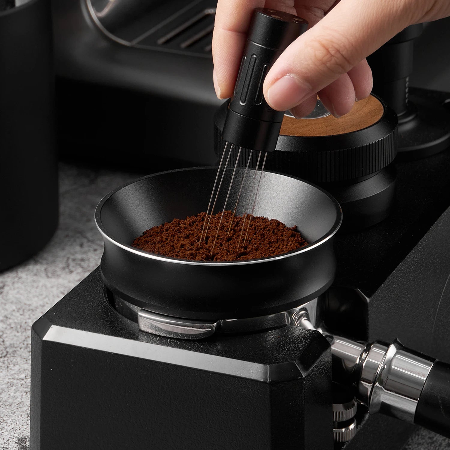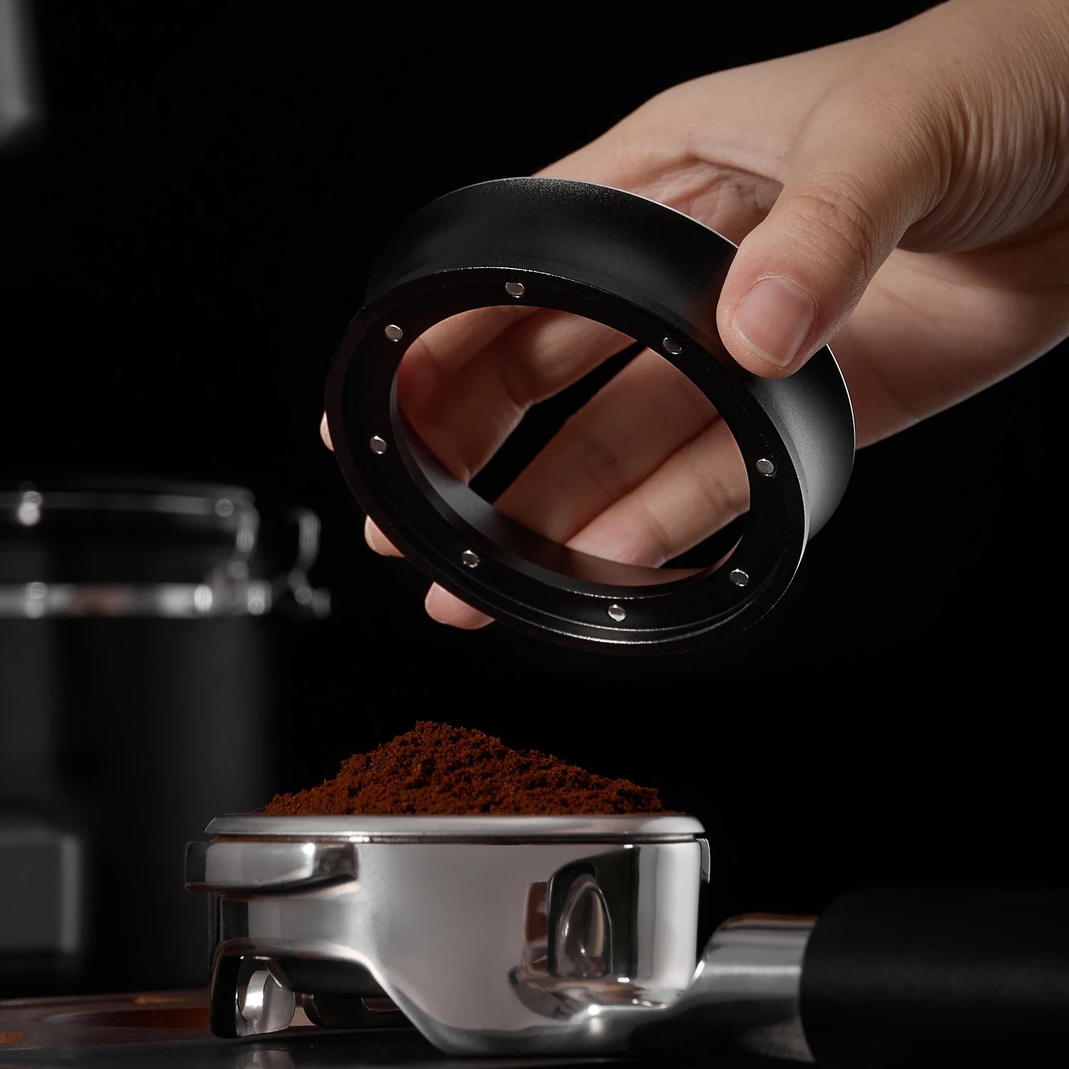 Precyzyjne dozowanie kawy bez rozsypywania. Ten magnetyczny pierścień dozujący wykonany ze stali nierdzewnej zapewnia trwałość i wygodę użytkowania. Dzięki wbudowanym magnesom stabilnie przylega do portafiltra, ułatwiając równomierne rozłożenie kawy.