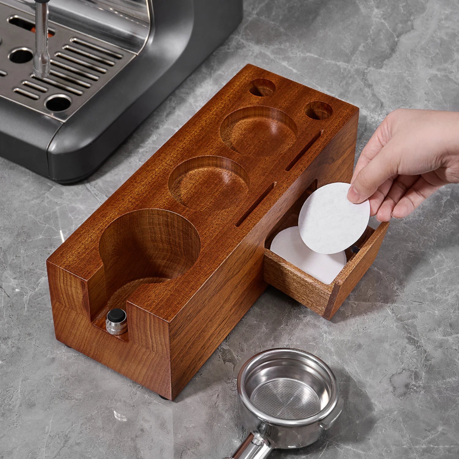 Drewniana stacja tampingowa do kawy