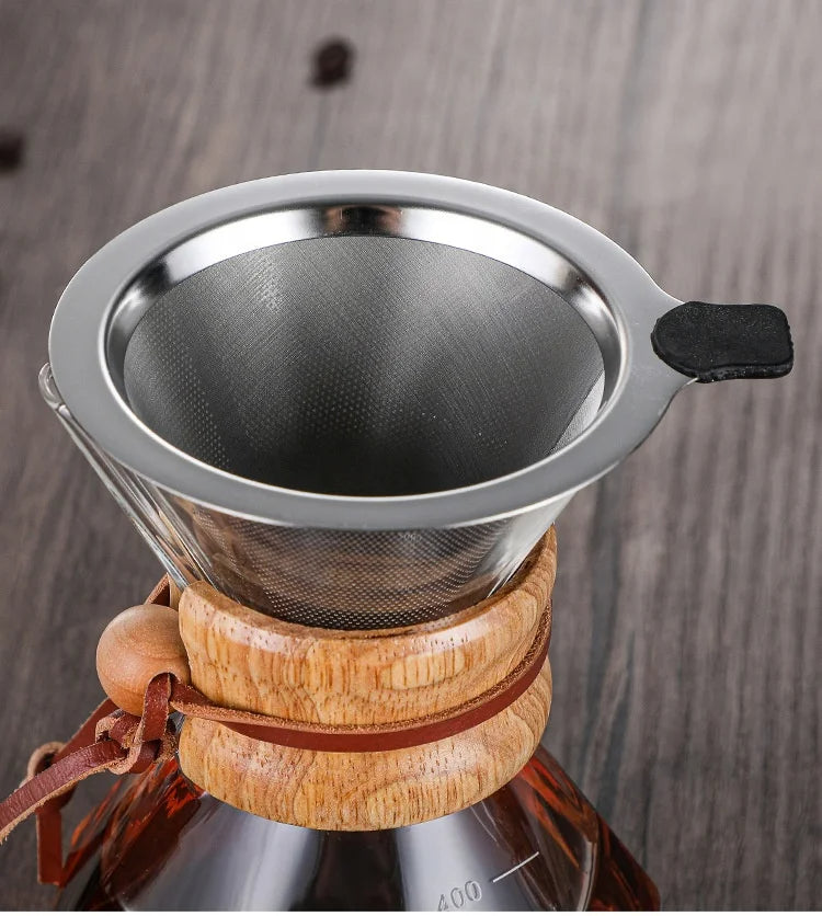 Odkryj nowy poziom parzenia kawy dzięki zaparzaczowi typu chemex o pojemności 600 ml, którego oryginalny kanciasty kształt inspirowany formą diamentu wyróżnia się na tle klasycznych modeli pour-over. Wykonany z odpornego na wysoką temperaturę szkła borokrzemowego, stanowi połączenie elegancji i praktyczności. Dzięki dołączonemu metalowemu filtrowi wielokrotnego użytku możesz cieszyć się bogatym smakiem kawy bez konieczności używania filtrów papierowych.