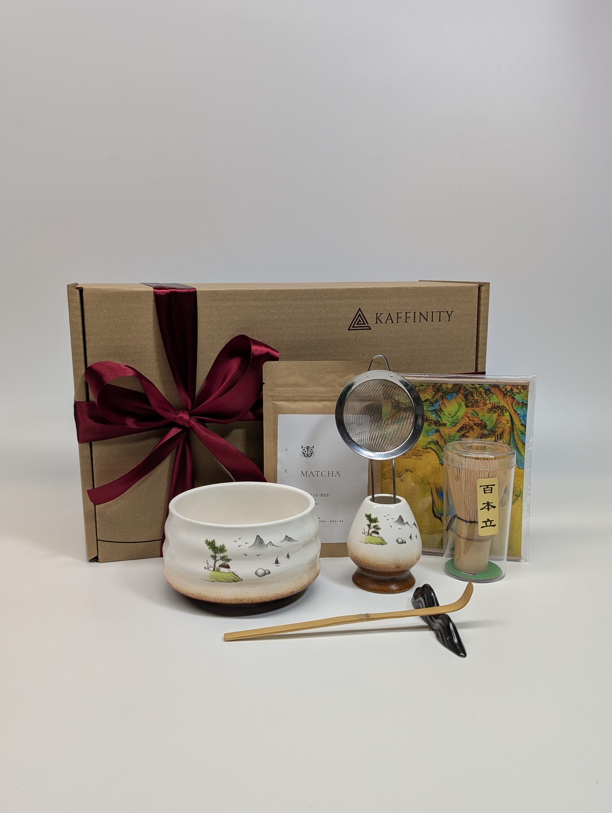 To praktyczny prezent, który po otwarciu jest gotowy do użycia — wszystko, co potrzebne do przygotowania matchy, znajduje się w środku.